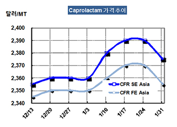 표, 그래프: < Caprolactam 가격추이 > <화학저널 2014/02/06> |