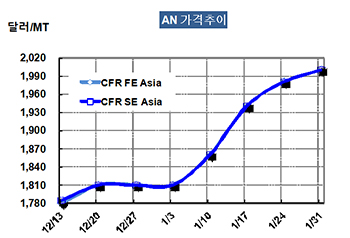 AN 가격은 1월28일 CFR FE Asia 톤당 2000달러로 20달러 상승했다.