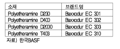 2월6일자로 kg당 0.2달러 올려 … 주로 에폭시수지 경화제에 투입되고 있다. ![]() 한국바스프(BASF)는 2월6일 폴리에테르아민(Polyetheramine) 가격을 kg당 0.2달러 인상한다고 발표했다. 인상가격은 즉시 효력을 가지며 계약물량은 재계약시점에 따라 변동 것으로 알려졌다. Polyetheramine은 플래스틱 및 폴리우레아(Polyurea) 코팅, 접착제, 사출성형에 사용되는 화학제품으로 에폭시수지(Epoxy Resin) 경화제용으로도 투입되고 있다. BASF는 Polyetheramine 브랜드 Baxxodur를 독일의 Ludwigshafen 및 미국 루이지애나의 Geismar 공장에서 생산해 세계시장에 공급하고 있다. <강슬기 기자> <화학저널 2014/02/06> |