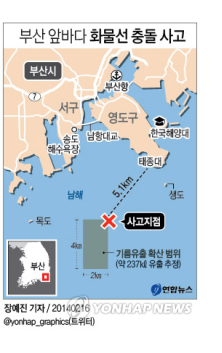 2월15일 부산 앞바다에서 발생한 화물선과 유류공급선 충돌로 벙커C유 237㎘가 유출된 것으로 추정되면서 2차 피해가 우려되고 있다.
