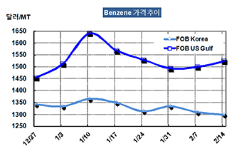 표, 그래프: < Benzene 가격추이> <화학저널 2014/02/26> |