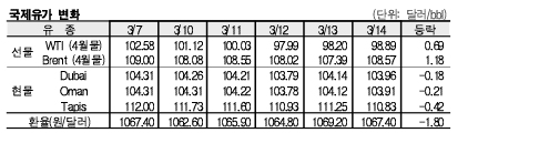 표, 그래프: < 국제유가 변화 > <화학저널 2014/03/17> |