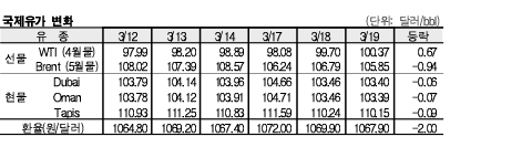 3월19일 국제유가는 우크라이나 사태의 긴장이 완화된 영향으로 하락했다.