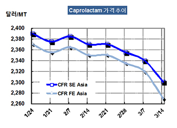 카프로락탐 가격은 3월13일 CFR FE Asia 톤당 2270달러로 50달러 급락했다.
