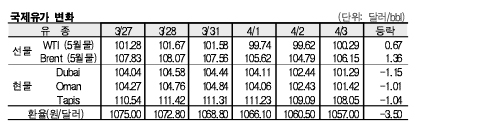 표, 그래프: < 국제유가 변화 > <화학저널 2014/04/04> |