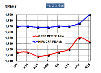 표, 그래프: <PS 가격추이> <화학저널 2014/04/30> |