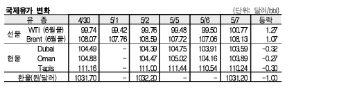 5월7일 국제유가는 미국의 원유 재고 감소 등의 영향으로 상승했다.