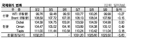 5월9일 104.89달러로 0.90달러 급등 … 브렌트유 107.89달러 형성