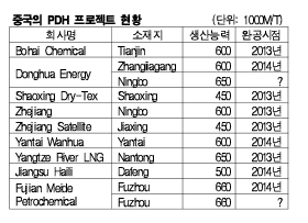 중국에서 PDH(Propane Dehydrogenation)를 통한 프로필렌(Propylene) 생산 프로젝트가 잇따르고 있다.