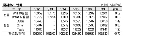 5월19일 106.56달러로 1.49달러 올라 … 브렌트유는 109.37달러 형성