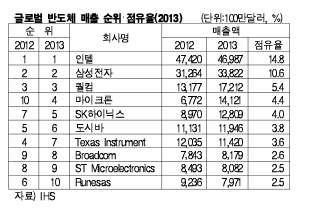 2013년 매출액 338억달러로 10.6% 차지 … SK하이닉스는 128억달러