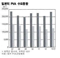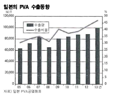 일본이 PVA(Polyvinyl Alcohol) 수출을 확대하고 있다.