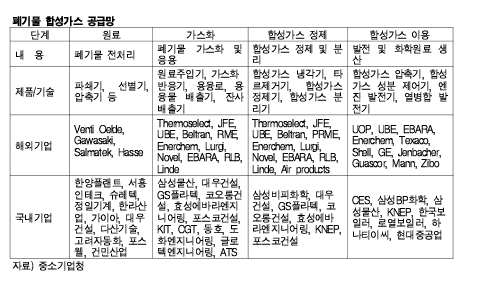 국내 폐기물 가스화 시장은 확장 초기단계에 있으며 이미 해외에서는 합성가스의 고부가가치 연료 생산기술이 개발돼 상용화 되고 있다.