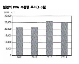 일본의 PVA(Polyvinyl Alcohol) 생산기업들의 수출 시프트가 완전히 정착된 것으로 나타났다.