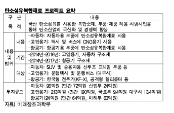 미래창조과학부(장관 최문기)가 탄소섬유 복합재료 프로젝트를 추진함에 따라 국내 탄소섬유 시장이 본격적으로 형성될 전망이다.