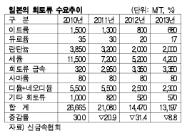 그러나 디스프로슘(Dysprosium)을 비롯한 중‧중(中‧重토) 희토류를 취급하는 네오디뮴(Neodymium) 자석 및 합금 관계자들은 시장에 미치는 영향이 제한적일 것으로 판단하고 있다. 중국이 디스프로슘 수출량을 늘리더라도 보급이 확대되고 있는 친환경자동차 수요에 대응하기 위해서는 디스프로슘을 사용하지 않는 기술이 필수적이기 때문이다. 다만, 디스프로슘은 가격이 하락할 것으로 전망됨에 따라 재고를 조기에 처리하기 위한 움직임이 확대되고 있어 침체돼 있던 수요가 증가세로 전환했다. 희토류 가운데 세륨(Cerium) 등 경희토류는 중국 이외에서도 조달이 가능하기 때문에 중국이 희토류와 텅스텐(Tungsten), 몰리브덴(Molybdenum) 등 희소금속의 수출량을 늘리고 수출세 25%도 철폐한다면 생산기업에게는 안정조달의 이점이 확대되게 된다. ![]() 그러나 중국 이외의 공급처가 없는 디스프로슘은 HDD(Hard Disk Drive)용 수요가 침체됐지만 자동차용이 늘어나고 있으며, 디스프로슘 함유량이 4%에 달하는 EPS(Electronic Power Steering)와 고성능 모터용이 수요를 견인하고 있기 때문에 디스프로슘의 중국의존도에는 변화가 없을 것으로 예상된다. 자석합금기업들은 중국사업에 공을 들이는 한편 디스프로슘 함량을 낮추는 기술개발에 주력하고 있다. 디스프로슘 함량 4% 제품에서 디스프로슘 제거에 성공한 Showa Denko는 6% 제품의 디스프로슘 함량 저감을 추진한다. 희토류 자석메이저인 Shin-Etsu Chemical은 입계 황산 합금공법으로 디스프로슘 사용량을 절반으로 줄이는데 성공한 것으로 알려졌으며 Santoku도 디스프로슘 함유량을 절반 수준으로 감축하는 기술을 보유한 것으로 알려졌다. 네오디뮴 자석 부문에서 일본시장 점유율 50% 이상을 차지하고 있는 Hitachi Metals은 디스프로슘 함량을 2% 삭감할 수 있는 디스프로슘 기술을 적용한 새로운 자석의 양산을 곧 시작한다. Hitachi Metals이 사용하고 있는 네오디뮴 자석의 특허가 7월 미국에서 만료되지만 다수의 관련특허와 제조공법 특허는 아직 기간이 남아있어 특허기술을 사용하지 않으면 양산이 어려운 것으로 알려졌다. 그러나 최근 디스프로슘 수요 증가 및 재고처분 움직임이 확대되고 있다. 신금속협회에 따르면, 디스프로슘을 비롯한 기타 희토류 수요는 희토류와 희소금속 가격이 급등하면서 2010년부터 감소세를 기록했으나 2013년 증가한 것으로 나타났다. 중국의 수출규제를 의식한 전자기기, 자동차 등 수요기업들이 높은 가격에도 구매를 지속해 재고를 비축했기 때문이다. 수요기업들이 확보한 재고는 5-6년 가량 사용할 수 있는 양으로 파악되며 현재 거래가격은 구입가격의 절반 이하 수준임에도 불구하고 적자를 각오하고 판매를 서두르고 있다. 중국이 WTO의 결정을 수용하면 2015년 하반기에는 디스프로슘 가격이 크게 낮아질 것으로 기대되기 때문이다. 그러나 중국의 대응방식을 예측하기 어렵기 때문에 다시 희토류와 희소금속의 중요성이 부각되고 있다. 표,그래프: <일본의 희토류 수요추이> <화학저널 2014/06/26> |