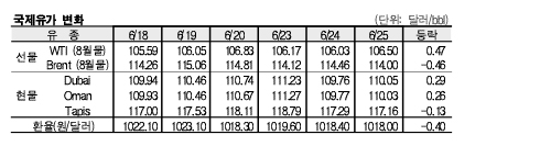 6월25일 110.05달러로 0.29달러 올라 … 브렌트유 114.00달러 형성