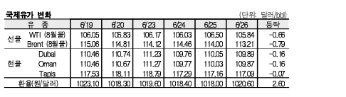 6월26일 109.89달러로 0.16달러 하락 … 브렌트유 113.21달러 형성