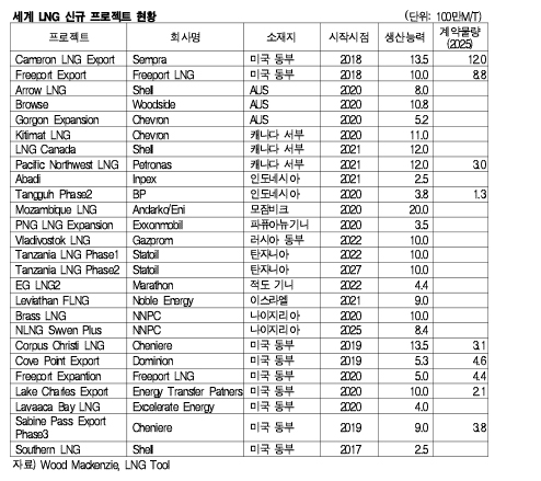 표,그래프: <세계 LNG 신규 프로젝트 현황> <화학저널 2014/06/27> |