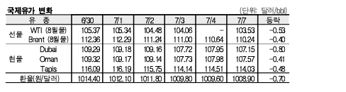 7월7일 107.15달러로 0.80달러 급락 … 브렌트유는 110.24달러 형성