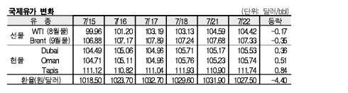 7월22일 105.53달러로 0.36달러 올라 … 브렌트유 107.33달러로 하락