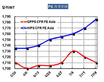 GPPS, CFR China 1710달러로 10달러 떨어져 … HIPS 1785달러
