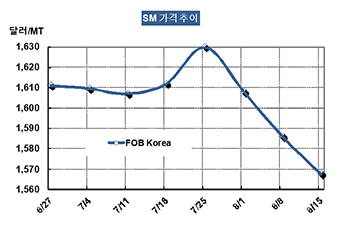 FOB Korea 1568달러로 18달러 하락 … 정기보수 대비 풀가동 지속