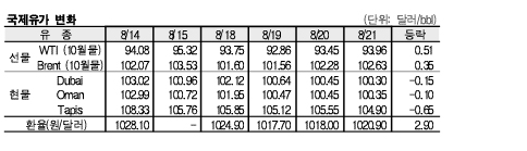 8월21일 국제유가는 미국 경기지표 개선 등의 영향으로 상승했다.