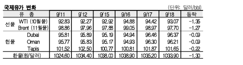 9월18일 국제유가는 미국의 달러화 강세 등의 영향으로 하락했다.
