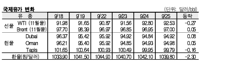 [국제유가] 국제유가, 쿠르드 수출 재개 “급락” | 2025-09-30 | ||