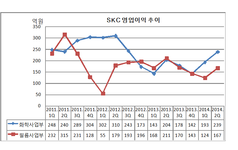 필름사업부, 2/4분기 영업이익 167억원 불과 … 임직원 20명 감원 화학뉴스 2014.09.26