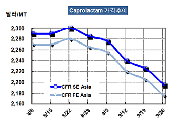 표,그래프: < Caprolactam 가격추이 > <화학저널 2014/10/02> |