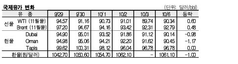 10월6일 90.14달러로 0.98달러 급락 … 브렌트유 92.79달러 형성
