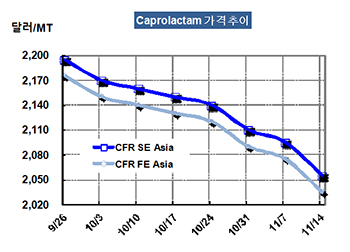 표,그래프: < Caprolactam 가격추이 > <화학저널 2014/11/20> |