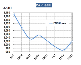 P-X 가격은 11월21일 FOB Korea 톤당 1020달러로 50달러 급등했다.