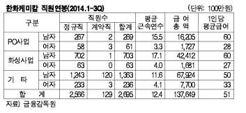 매각대상은 삼성종합화학 지분 100%, 삼성토탈 50%, 삼성테크윈 32.43%, 삼성탈레스 50%로 알려졌다. ![]() 삼성토탈은 삼성종합화학과 프랑스 정유기업 토탈(Total)이 지분 50%씩을 보유하고 있기 때문에 삼성종합화학이 보유한 지분 50%만 한화가 인수한다. 삼성종합화학은 현재 출자사업만 담당하는 화학부문 지주회사의 역할을 하고 있다. 우선, 합병되는 삼성 계열사 직원들의 연봉이 어떻게 조정될지에 대해 궁금증이 증폭되고 있다. 금융감독원에 공시되는 삼성토탈의 직원연봉을 분석해보면, 2014년 3/4분기까지 총 직원 1490명의 1인 평균 급여액이 6300만원에 달했다. 반면, 한화케미칼은 총 직원 2695명의 평균 급여액이 5100만원으로 삼성토탈보다 낮은 수준을 나타냈다. 삼성토탈은 2014년 3/4분기 기준 화성부문 매출이 2조9166억9300만원에 달해 전체의 47.2%로 압도적이었고 수지부문이 1조6998억6600만원으로 27.4%, 에너지부문이 1조5301억5600만원으로 24.8%를 차지했다. 한화케미칼의 화성사업부 연봉과 비교해보면, 한화케미칼 화성사업부에 속한 766명은 평균 급여액이 5700만원으로 전체 사업부의 평균인 5100만원보다는 높았지만 삼성토탈의 6300만원보다는 여전히 낮았다. 합병했을 때 도출할 수 있는 시나리오는 연봉 차이를 그대로 유지하거나, 연봉이 높은 곳 기준으로 다소 인상하거나, 3-4년 정도 기간을 두고 인상률을 조정해 맞추는 3가지 방안이 예상되고 있다. 삼성토탈과 한화케미칼 관계자는 “아직 구체적인 연봉 조정에 대해서는 밝힐 수 있는 부분이 없다”면서 “일반적인 인수합병(M&A)의 전례를 보았을 때 기간을 두고 순차적으로 조정할 가능성이 크다”고 말했다. ![]() 시장 관계자는 “연봉조정에서 가장 중요한 것은 합병기업의 자급여력”이라며 “재정적인 여력이 된다면 한 번에 통일된 급여 테이블을 만들고 통일시키는 것이 좋겠지만 시일이 필요할 것”이라며 “일단 양사의 각종 인사, 급여, 복리후생제도를 모두 테이블에 올려놓고 연봉을 제외한 인사, 복리후생제도를 서로 동일하게 맞추면 일반적으로 연봉이 적은 곳의 제도가 부족하기 때문에 한화케미칼의 임직원에게 혜택이 돌아갈 가능성이 크다”며 “한동안 양사의 연봉은 기존 시스템을 그대로 유지하되 시간외수당, 휴일근무수당 등으로 조정하고 시일이 지난 후 통합된 급여 테이블이 만들어질 가능성이 크다”고 주장했다. 삼성그룹이 비주력 계열사를 정리하면서 지급하는 위로금 규모가 어느 정도 될지도 주목받고 있다. 일반적으로 인수합병 등으로 계열사를 매각하면 임직원들의 사기 진작을 위해 위로금을 지급하는데 삼성그룹은 지금까지 위로금을 통 크게 지급해왔기 때문이다. 실제로 2013년 삼성코닝정밀소재가 미국 코닝(Corning)으로 매각될 때 위로금을 두고 삼성코닝정밀소재 노동자로 구성된 비상대책위원회는 협상 초기 5억원까지 요구해 관심을 모으기도 했다. 결과적으로 삼성그룹은 1인당 약 6000만원으로 합의했다. 2011년 아이마켓코리아(IMK)를 인터파크 컨소시엄에 매각할 당시에도 삼성그룹은 임직원들에게 22개월의 연봉을 지급해 관심을 끌었다. IMK 임직원은 총 385명으로 2년치 연봉은 평균 7800만원 수준이었다. 시장 관계자는 “삼성그룹 직원들은 브랜드에 대한 프라이드가 높기 때문에 위로금 지급 협의와 관련해서도 상당히 진통을 겪는 것으로 알려졌다”며 “삼성그룹 역시 임직원들의 동요를 참작해 적지 않은 보상을 할 것으로 알고 있다”고 말했다. <김원지 기자> 표,그래프: < 삼성토탈 직원연봉(2014.1-3Q) >< 한화케미칼 직원연봉(2014.1-3Q) > <화학저널 2014/11/28> |