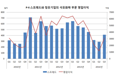 P-X 스프레드가 정유기업의 영업실적을 좌우하고 있다.