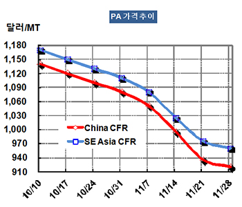 표,그래프: < PA 가격추이 > <화학저널 2014/12/05> |
