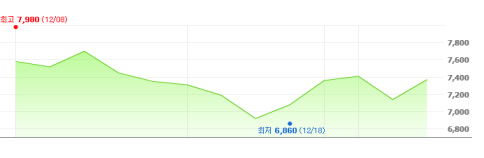 12월8일 7980원으로 최고치 달성 이후 부진 … 뚜렷한 투자명분 필요