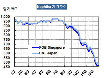 나프타(Naphtha) 가격은 12월26일 CFR Japan 톤당 484달러로 2014년 거래를 마감했다.