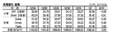 1월2일 국제유가는 미국의 경기지표 악화 및 달러화 강세 등으로 하락했다.