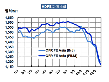 HDPE 가격은 2014년 12월26일 CFR FE Asia 톤당 1200달러로 마무리했다.