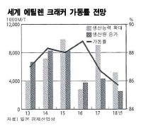 에틸렌(Ethylene) 크래커의 가동률이 2017년 이후 하락할 것이라는 전망이 제기됐다.
