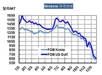 2014년 벤젠 가격은 FOB Korea 톤당 633달러로 마감했다.