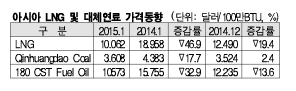 재고량이 높은 수준을 유지한 반면 최대 구매처인 한국가스공사(KOGAS)가 구매량을 줄였기 때문으로, 아시아 LNG 가격은 2009년 2월 이후 가장 큰 폭의 하락세를 나타냈다. 시장 관계자는 “동북아시아 구매자들은 여전히 높은 재고량을 확보하고 있어 현물성 구매수요가 제한적이었다”며 “특히, 낮은 가격에도 불구하고 인디아와 중국 바이어들이 추가 구매를 하지 않은 것이 하락요인으로 작용했다”고 밝혔다. ![]() 1월 가격은 2011년 100만BTU당 9.639달러 이후 최저치를 기록한 것으로, 일본의 후쿠시마 원전사고 이후 몇 년간 100만BTU당 15달러대의 안정적인 가격이 무너져 시장에 미치는 충격이 큰 것으로 나타나고 있다. LNG 가격이 2011년 3월 후쿠시마 사고 이후 10달러 아래로 떨어진 것은 3년9개월만에 처음으로 1월물 가격은 12월1일 100만BTU당 9.90달러까지 추락했다. 그러나 가격하락 압박이 강해지면서 몇몇 동북아시아 구매자가 구매할 움직임으로 보이고 있는 상태에서 러시아, 오스트레일리아, 파푸아뉴기니 등 다수의 공급자는 동일가격에 거래를 제안한 것으로 알려졌다. 최대 구매자인 KOGAS가 현물거래를 통해 구매량을 소폭 늘릴 것으로 예상되는 가운데 대체재인 석탄 가격은 전월대비 2.4% 상승함으로써 LNG의 가격경쟁력이 한층 높아진 것으로 나타났다. 한편, 180 CST Fuel Oil은 전주대비 13.6% 떨어져 100만BTU당 12.235달러를 형성했다. <이민지 기자> 표,그래프: <아시아 LNG 및 대체연료 가격동향> <화학저널 2015/01/07> |
