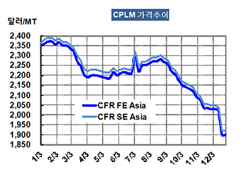 CPL 시세는 2014년 1월 CFR FE Asia 기준 톤당 2370달러를 형성했으나 춘절연휴를 앞두고 중국 시장의 거래가 둔화되고 원료인 벤젠(Benzene) 가격 약세로 하락하기 시작했다. 나일론(Nylon)섬유 수요 부진과 중국산 PA(Polyamide)의 경쟁력 상승하는 등 다운스트림 시장에서 수요증가가 뚜렷하지 않았다. ![]() 또 중국 CPL 시장이 활성화된 가운데 가격경쟁력에 밀린 아시아 CPL의 재고가 증가한 것도 거래 부진에 일조한 것으로 나타났다. 다만, 7월 초에는 원료인 벤젠이 미국에서 강세를 나타내며 2300달러까지 상승했으나, 기본적으로 수요가 부진한 가운데 원료인 벤젠 가격 상승세가 주춤함에 따라 1주일을 버티지 못하고 다시 하락세로 전화됐다. 이에 따라 9월에는 벤젠가격이 8월보다 107달러 낮게 형성되면서 아시아 CPL ACP(아시아 계약가격)도 동반 하락해 톤당 2245달러로 8월보다 80달러 낮게 결정됐다. 12월18일에는 원료 벤젠(Benzene) 가격이 FOB Korea 톤당 648달러 수준으로 하락한 영향으로 떨어졌으며 톤당 1900달러로 120달러 폭락했다. 이에 따라 12월 계약가격은 11월보다 낮은 수준을 형성할 것이 확실시되고 있다. 2015년에는 Yancheng Haili 20만톤, 내몽골자치구의 Qinghua 20만톤을 비롯해 60만톤이 증설될 것으로 알려지고 있다. 이밖에 석탄 저장량이 중국 최대인 Shanxi 소재 Shanxi Yangmei, Lanhua Kechuang 등 3개 프로젝트도 추진되고 있으나 가동시기가 불명확한 것으로 나타났다. 2016년 이후에는 나일론 중합기업인 Hengli가 CPL 생산을 시작할 계획이다. 과당경쟁이 지속됨에 따라 사업 채산성이 악화되고 있는 가운데 국내기업 카프로, 인도네시아의 FACT, 콜롬비아의 Monomeros, 우크라이나 Cherkassy 등은 일부 혹은 모든 설비 가동중단을 검토하고 있다. 이에 따라 인디아 등의 CPL 수입이 증가할 가능성이 높아지고 있다. <배정은 기자> 표,그래프: < CPLM 가격추이 > <화학저널 2015/01/08> |