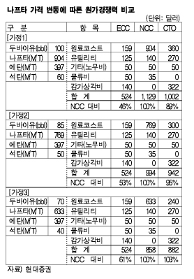 중국은 국제유가 폭락으로 CTO 원료인 석탄이 나프타대비 경제성이 떨어지면서 CTO 플랜트 증설을 포기하고 미국산 에탄(Ethane) 크래커 베이스의 석유화학제품을 수입해야 할 처지로 전환됐다. ![]() 현대증권에 따르면, 에틸렌(Ethylene) 생산방식별 원가를 비교했을 때 국제유가가 70달러 미만일 때에는 석탄화학이 경제성을 상실하는 것으로 분석되고 있다. 국제유가가 두바이유(Dubai) 기준 배럴당 100달러일 때 나프타 가격을 900달러로 추산하면 ECC(Ethane Cracking Center)는 NCC(Naphtha Cracking Center) 원가의 46%, CTO는 89%, 국제유가가 85달러 수준을 형성하면 ECC는 53%, CTO는 95%로 NCC 대비 가격 경쟁력에서 우위를 점할 수 있다. 그러나 두바이유가 70달러로 떨어지고 나프타 가격이 600달러대까지 하락하면 ECC는 NCC 대비 원료코스트가 61%로 높아지고, CTO는 103%로 NCC 대비 경제성에서 뒤처지는 것으로 분석되고 있다. 이에 따라 12월19일 나프타 가격이 500달러 붕괴되면서 CTO 플랜트는 경제성을 완전히 상실한 것으로 추정되고 있다. 시장에서는 국제유가가 바닥을 찍고 상승할 것이라는 의견이 다수로 CTO가 다시 경제성을 회복할 가능성은 높으나 2015년 국제유가가 70달러 수준에서 하향 안정화될 것이라는 전망이 우세해 중국의 CTO 플랜트 가동시기 지연이 불가피해지고 있다. <이민지 기자> 표,그래프: <나프타 가격 변동에 따른 원가경쟁력 비교> <화학저널 2015/01/08> |