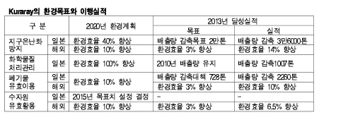 표,그래프: < Kuraray의 환경목표와 이행실적 > <화학저널 2015/01/23> |