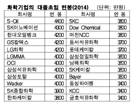 취업포털과 시장 관계자에 따르면, S-Oil은 대졸초임 연봉이 약 4400만원으로 국내 화학기업 중에서 1위를 차지한 것으로 나타났다. ![]() 2위는 SK이노베이션으로 4300만원을 기록했으며 현대오일뱅크는 4200만원으로 3위, GS칼텍스는 4300만원으로 공동 3위를 차지해 정유기업들이 높은 순위를 차지했다. 석유화학기업은 LG화학 4200만원, LG MMA 4000만원, OCI 4000만원, 삼성석유화학․삼성토탈 4000만원, SK종합화학 3900만원으로 나타났다. 한화케미칼에 인수되는 삼성석유화학과 삼성토탈은 4000억원 수준으로 한화케미칼에 비해 약 200만원 높은 것으로 파악되고 있다. 시장 관계자는 “정유기업은 성과급과 수당을 합하면 5000만원을 넘어섰으나 2014년 성과급을 지급하지 않아 5000만원 이하에 머무른 것으로 알고 있다”고 밝혔다. 석유화학기업도 일부 성과급을 지급했으나 대부분 시황 악화로 대졸초임이 4000만원대에 머무른 것으로 파악되고 있다. 울산․여수․대산단지 등에서 근무하는 생산직은 추가수당이 높아 사무직에 비해 300만-500만원 높게 받는 것으로 알려졌다. <허웅 기자> 표,그래프: < 화학기업의 대졸초임 연봉(2014) > <화학저널 2015/01/28> |