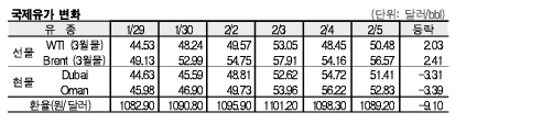 2월5일 국제유가는 글로벌 경기회복 기대감과 미국 달러화 약세 등의 영향으로 상승했다.
